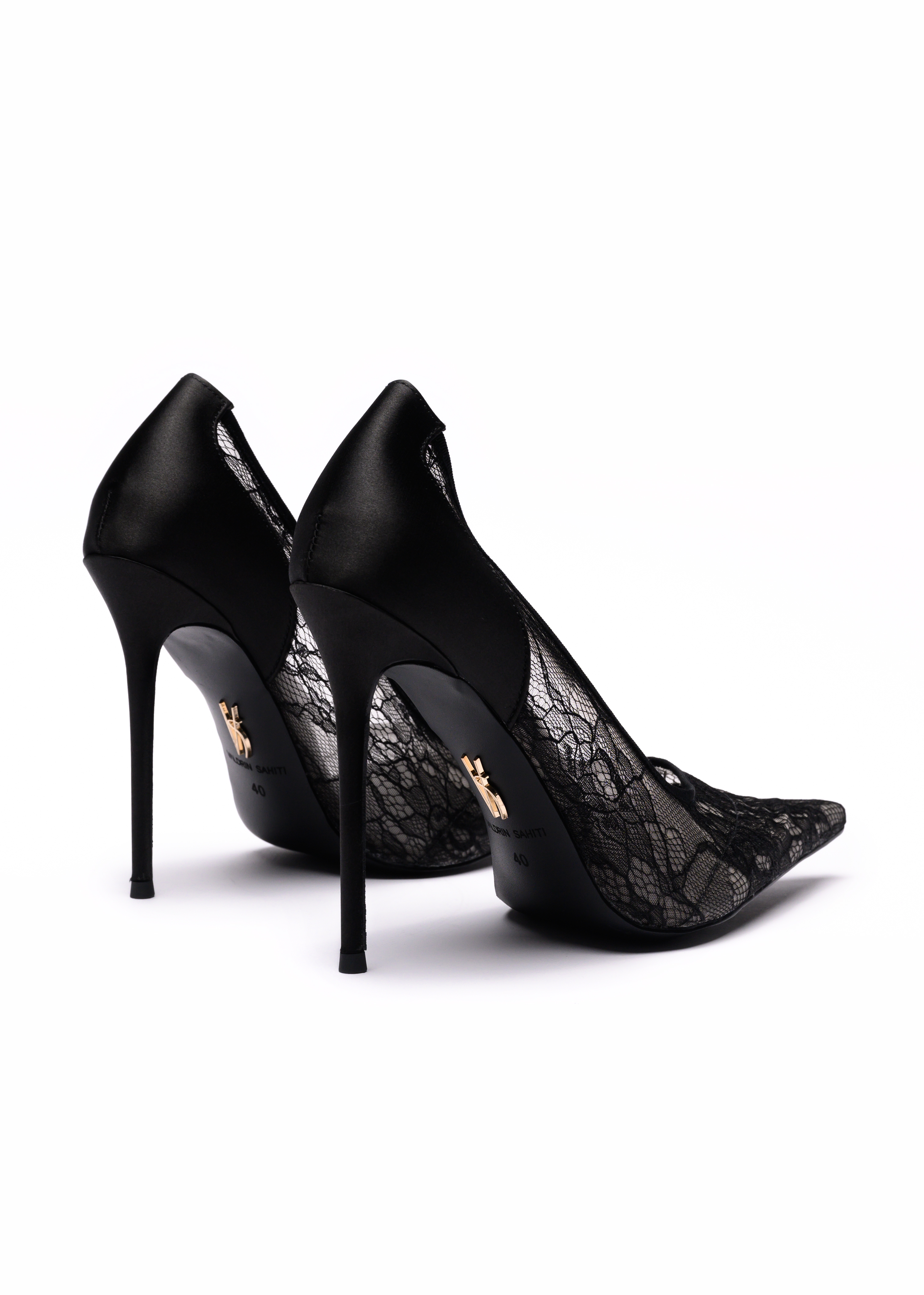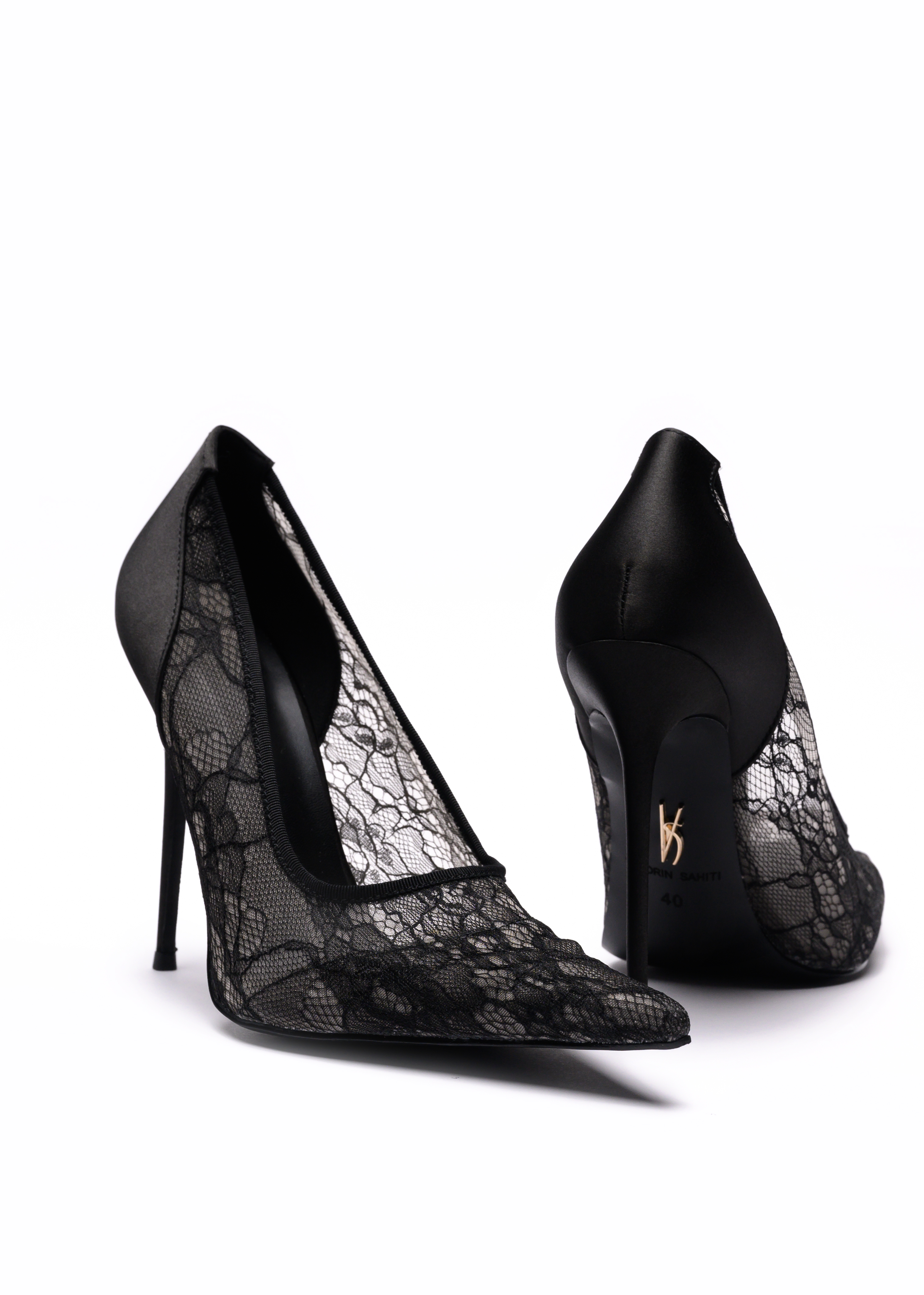 French lace pumps with a pointed toe and 120 mm stiletto heel.